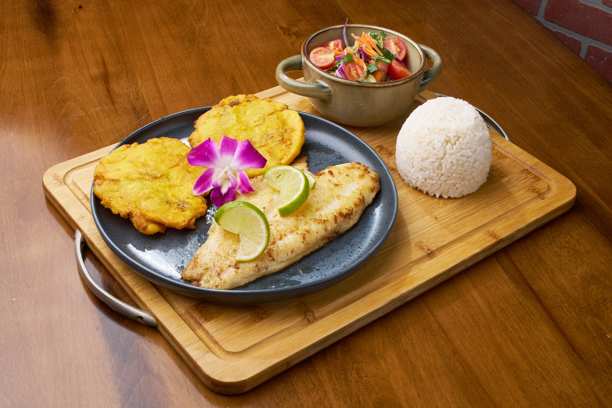 Go to the shopServed with a fresh salad, rice, and crispy fried plantains.